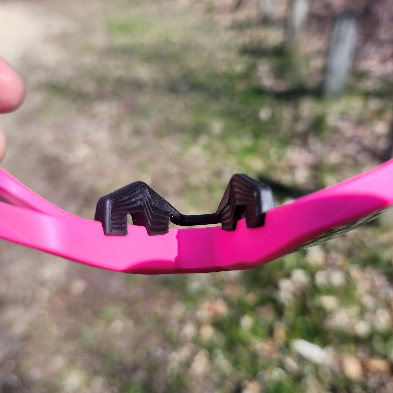 The glasses feature a rigid plastic frame with rubber nose pieces and rubber stem ends. None of the parts are adjustable, so it’s important to check the specs before ordering. SCOTT describes the fit as small-to-medium, which I feel is accurate. I have a fairly average-sized woman’s head, and the glasses fit snugly (in a good way) and stayed in place nicely.