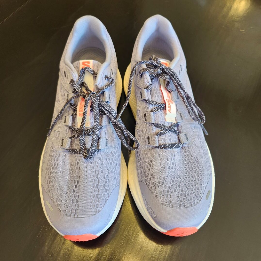 Trusty Salomon. If you have read any of my shoe reviews, you know that Salomon is my tried and true favorite. I’ve used many models over the years for both road and trail running. I have found that overall, the brand is trustworthy in their quality and durability. Last season, I did a review on the Aero Glide 2 road running shoe and was super pleased with what I found. In March of 2025, Salomon released the updated model, the Aero Glide 3. This new lighter version of the Aero Glide has me really flying through my speedwork! Or should I say gliding?