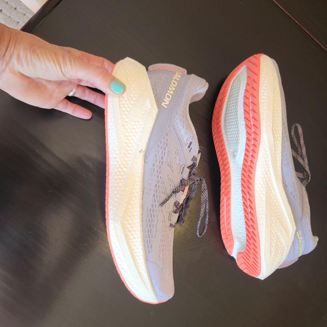 The SalomonFOAM evo midsole feels weightless but, magically bouncy. I feel like my foot turnover and cadence have improved. I’m looking for a great season of speedwork in this beauty of a shoe.