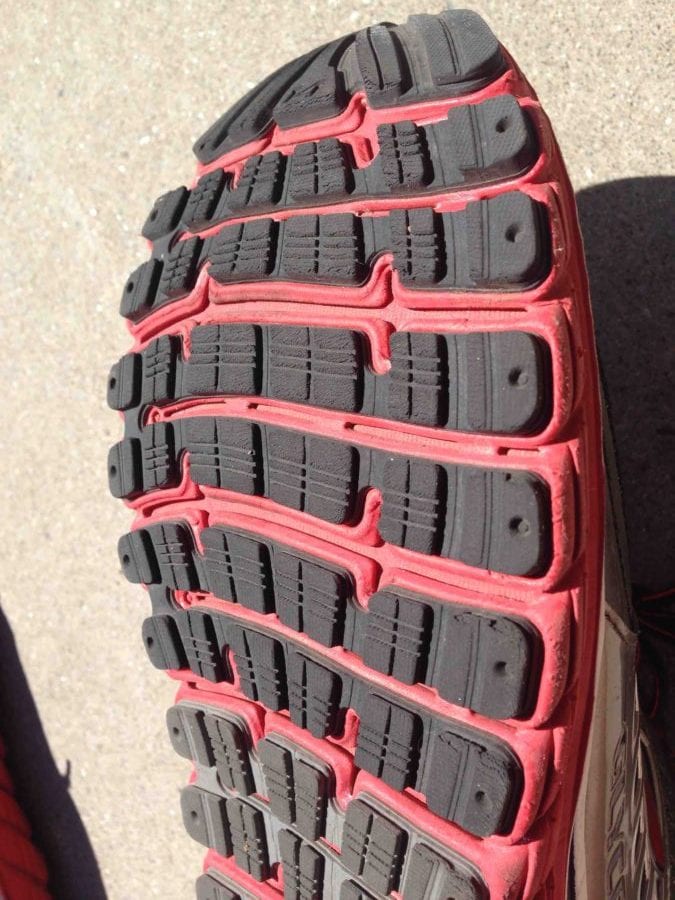The outsole of the Brooks Glycerin 14 has plenty of rubber allowing you to log 400+ miles without wearing through to the EVA. Keep in mind the wearing down of the outsole largely depends on the weight of the runner, the surface you are running on, and the style in which you run. The rubber outsole pieces are separated horizontally allowing the shoe to flex as you go through your stride.