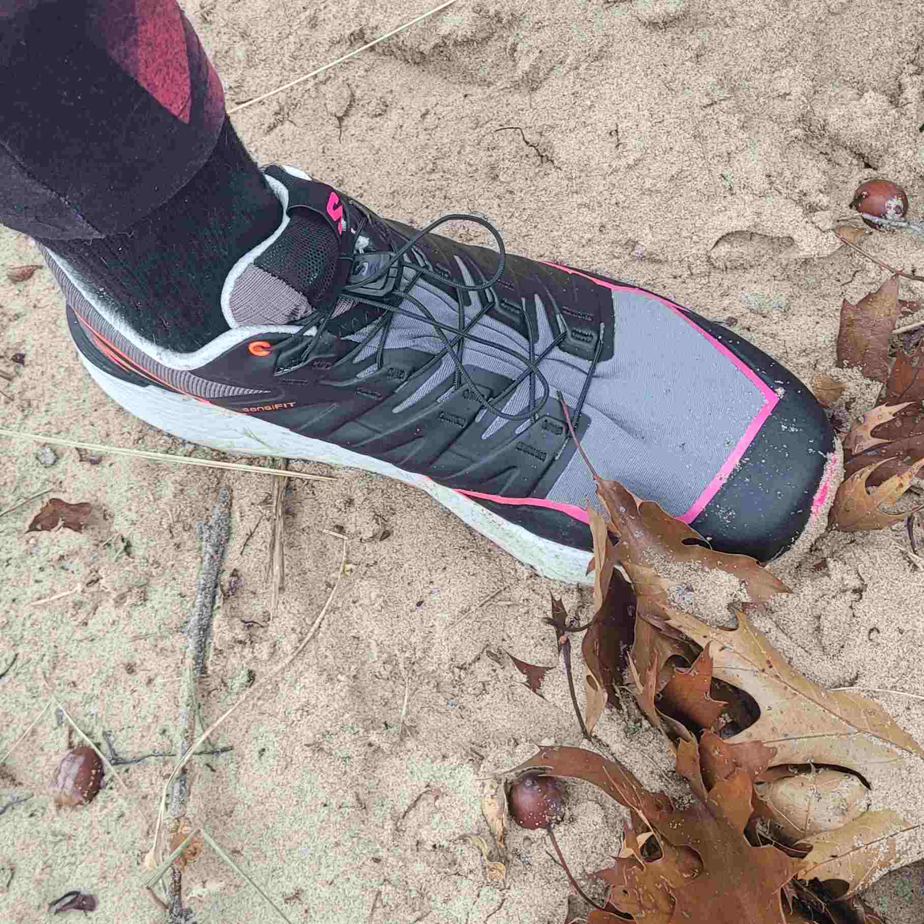 The midsole of the Thundercross is springy and reactive. With only a 4mm drop, I honestly didn’t expect so much cushioned comfort. I was pleased to find that these shoes performed like a minimalist shoe but provided the maximum amount of cushion. They are well balanced and lightweight. I had zero trouble with heel slippage or sore spots on the top of my arch. Speaking of the arch, the Thundercross have a medium height arch. While there was not any of the fit particulars that I would say were outside of the norm, that is exactly what makes this shoe so perfect. It is created for a wide range of foot shapes and is versatile in fit and intended use.