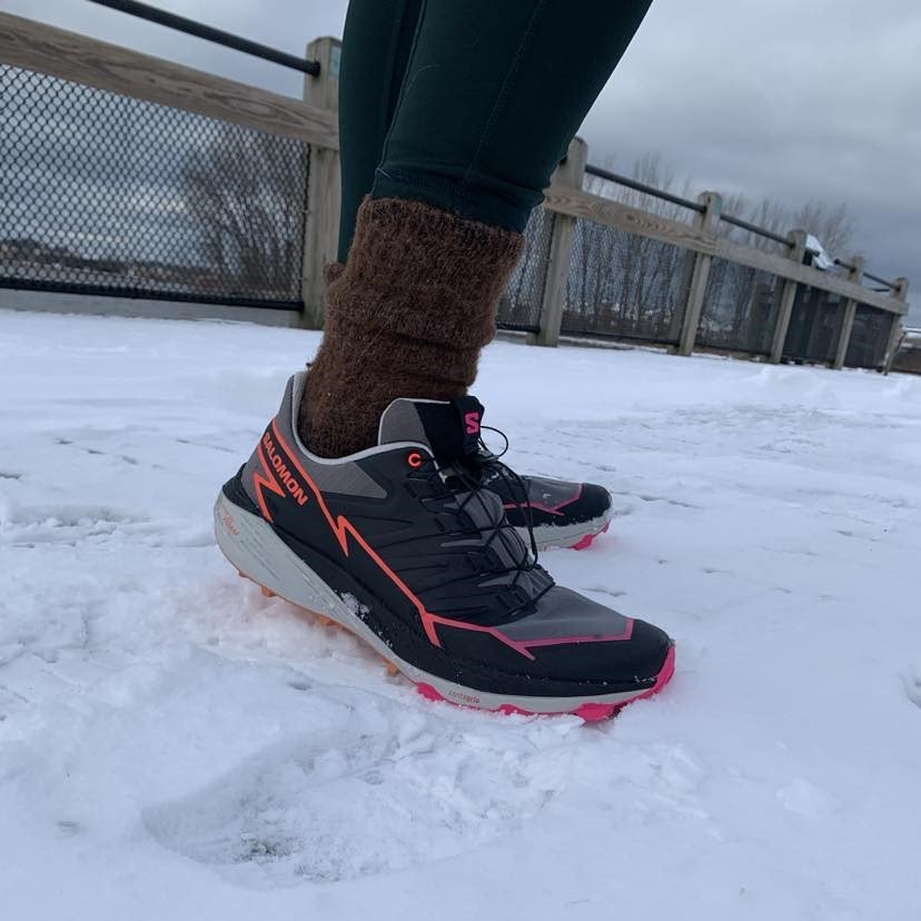 Salomon has nailed exactly what I was searching for in my long distance trail shoe. They bring together the lightweight, speedy feel of a minimalist shoe with the stable comfort of maximum cushion. With the trend in high cushion shoes being big and clunky, I was so happy that Salomon was able to create this perfect combo without too much bulk. The smooth ride on the new Thundercross reduced fatigue in my legs and the overall feel of my run. They possess excellent traction in snow, mud and sand and the comfort of these shoes is incredible. Nice work, Solomon!