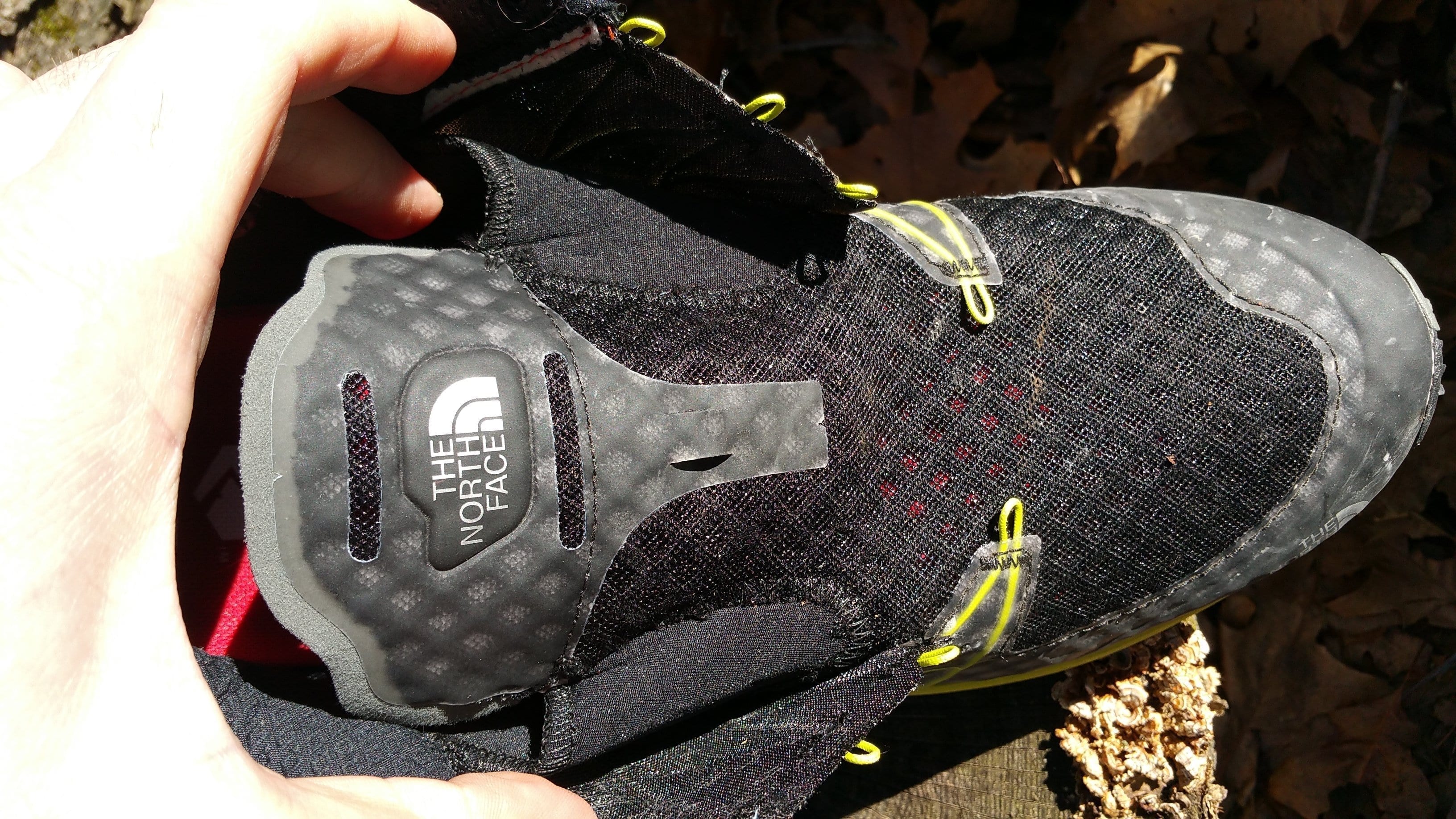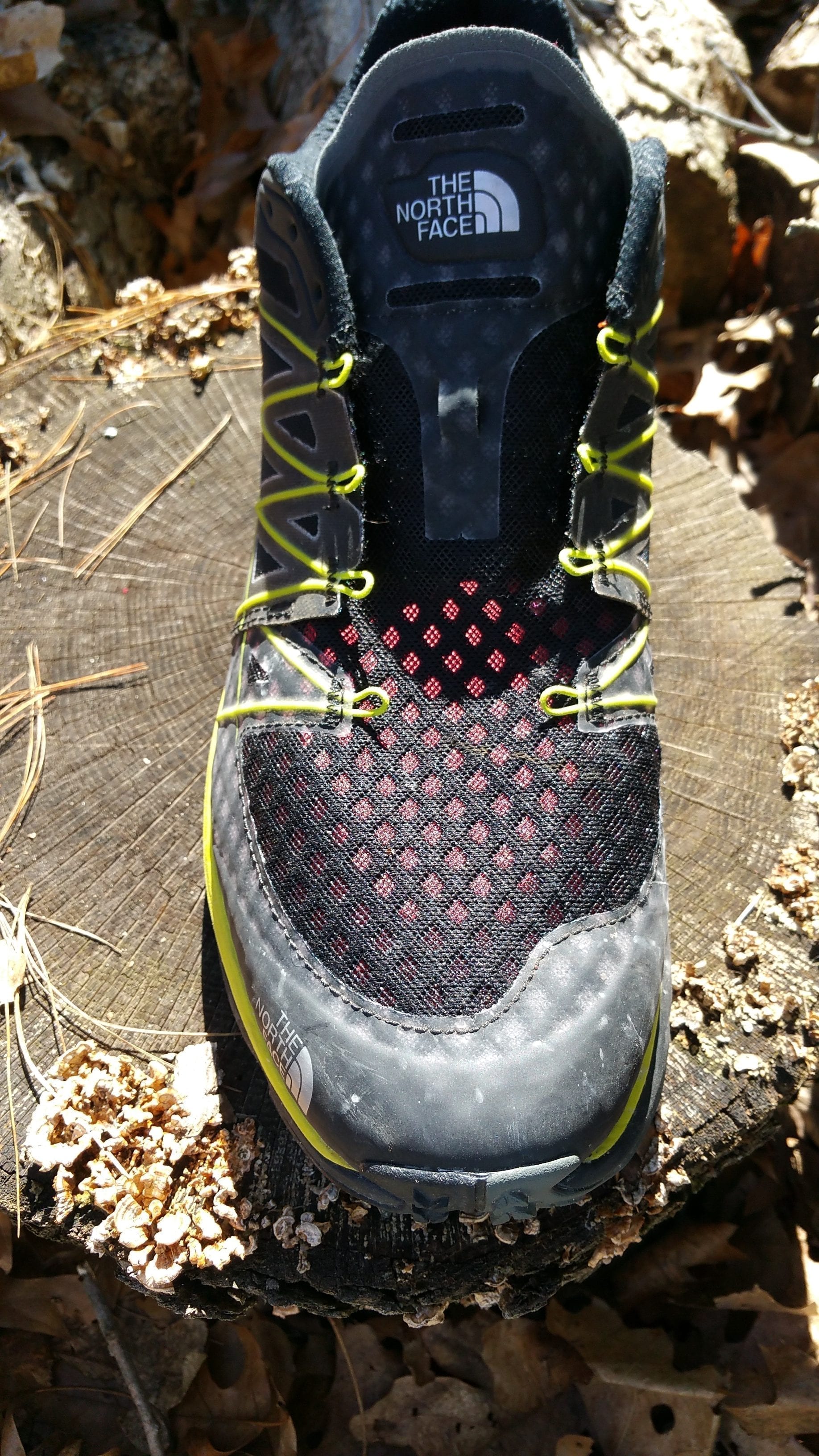 The Ultra Vertical has a dual density cradle mid-sole; which combines two EVA foam layers, the top being more resilient, and the bottom being more cushioned, delivered a soft heel cushioning and a firmer forefoot spring for an ultra smooth foot transition. Add in the OrthoLite foot bed and that is everything one would expect from the North Face line, a level of support that holds up well to trail running without feeling flimsy or lacking in cushioning.