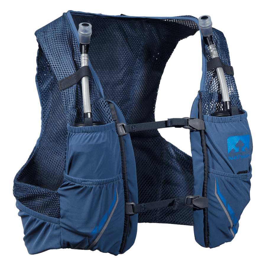 The Nathan Sports VaporZach 2.5L Race Vest allows you to go minimalist on your trail run without skimping on hydration. This lightweight vest has you covered when you start to feel thirsty, with two 12oz ExoShot soft flasks with tube straws for convenient hydration that deliver thirst quenching goodness without removing the flasks from the vest. The ultra-breathable construction of the VaporZach keeps you cool when your feet are pounding the dirt. Two straps secure the vest in place in front with adjustable clasps that enable any runner to dial in a comfortable fit. Small front lower pockets stash nutritional supplements and a larger top pocket in the back lets you shed a layer while the lower zippered pocket keeps your phone secured. If you like to move quickly through the trails and don’t want a heavy pack to drag you down, this is the one for you.