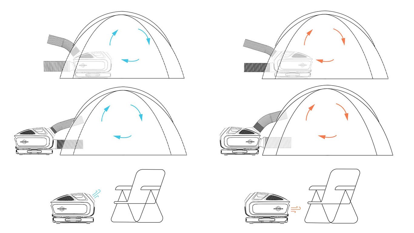 - Heating Mode: The pleasant surprise. Using the heat pump principle, it can raise the ambient temperature by up to 20°F (using 200-500W, runtime 2-5 hours). It’s not a blast furnace, and Zero Breeze explicitly states it’s only effective in ambient temps above 40°F (10°C). Don’t expect it to heat your tent in a blizzard, but for taking the chill off a cool evening or morning, it’s a fantastic bonus feature.