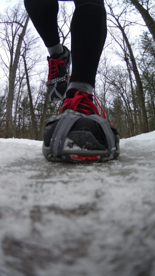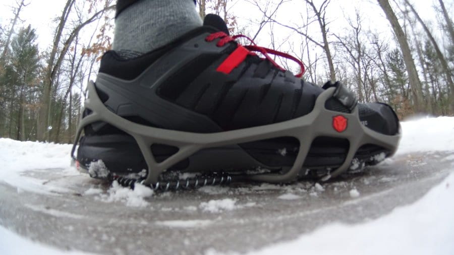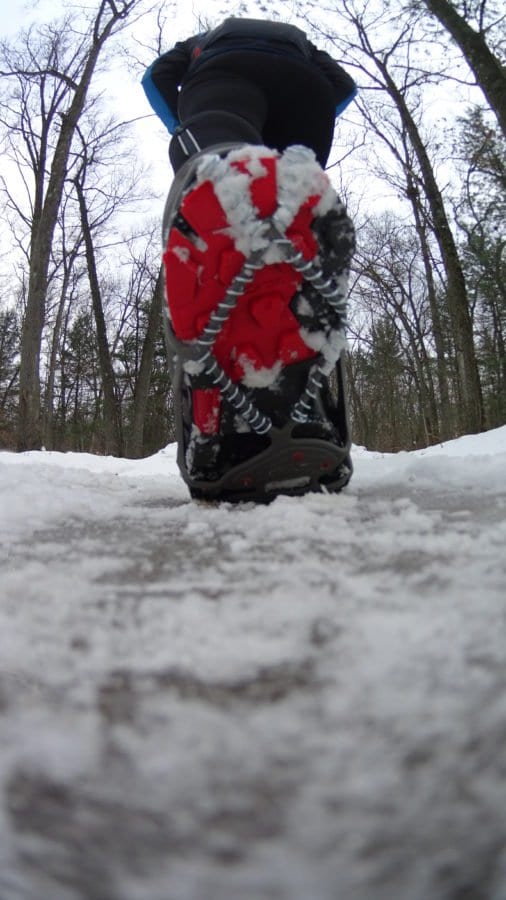 If you are like me, running on a treadmill just doesn’t cut it, I need to be outside and among nature, breathing in that fresh air, no matter the weather. Sometimes those conditions can make running a bit difficult. Namely, winter running, most of the time I can get by with a decent pair of lugged trail running shoes for most winter conditions. However, there are times when the roads and trails are covered by smooth ice and/or a thin layer of snow and trying to run on this surface creates a scene right out of Disney’s Bambi movie. This is where adding some additional traction to your running shoe is extremely helpful. Enter the Yaktrax Run.