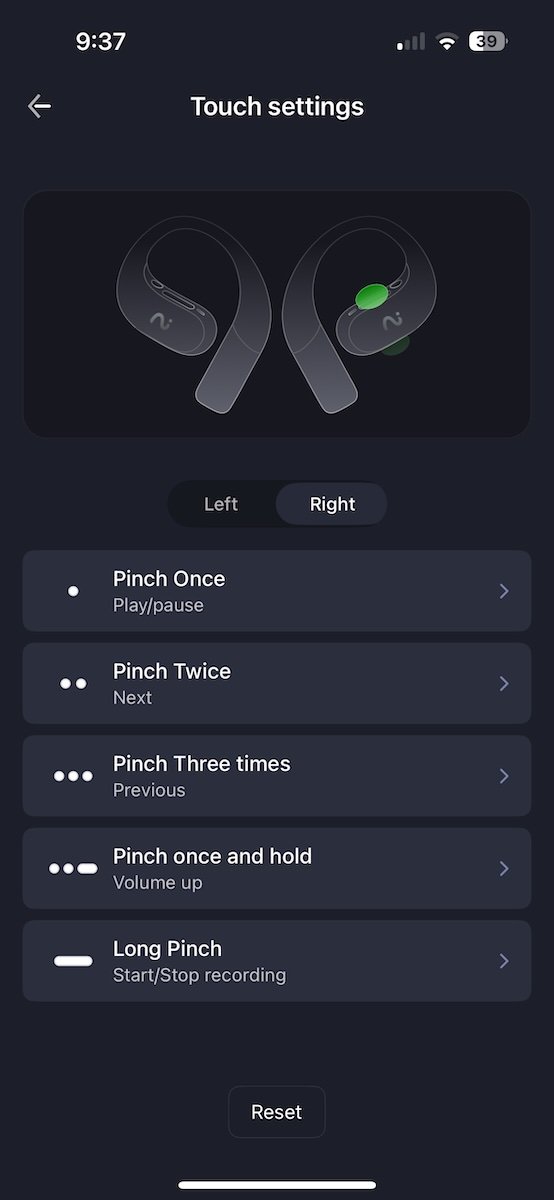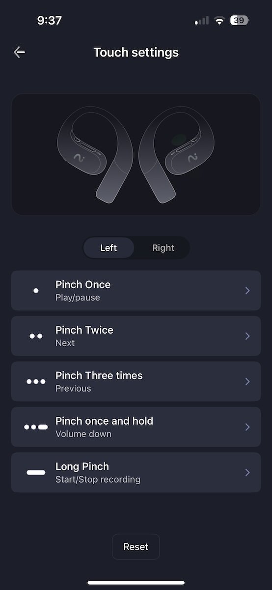Controls are intuitive and easy to learn. Single, double, and triple taps let you play/pause, skip tracks, or go back, and you can press and hold to change volume or activate the AI recording features. The layout is customizable in the app, and I had no trouble setting things up to my liking.