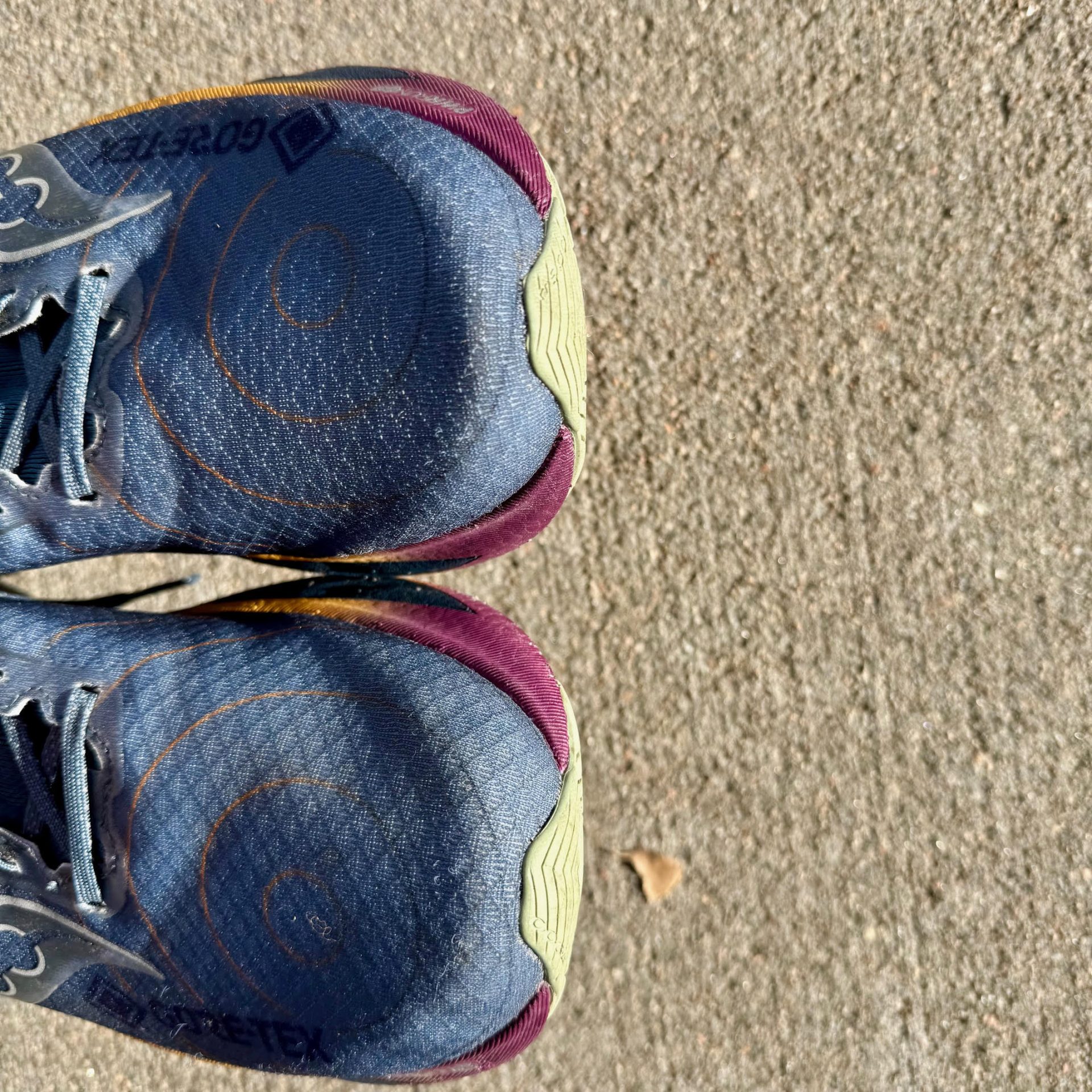 Aside from the upper’s GTX qualities and striking look, the midsole takes center stage. The color blast and carvings make them look speedy. It does seem like a rather high stack, but I quickly forget about it when running. The feel is natural, smooth, and quite comfortable.